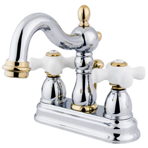 Kingston Brass KB1604PX Heritage 4-Inch Centerset Lavatory Faucet with Porcelain Cross Handle, Polished Chrome and Polished Brass (Not CA/VT Compliant)