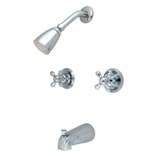 BEST DISCOUNT Kingston Brass KB241AX Twin Handle Tub and Shower Faucet with Decor Cross Handle, Polished Chrome
